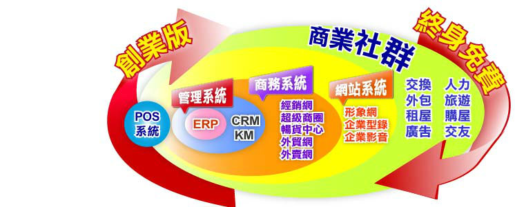 2.企業對外: 形象網.超級商圈.外賣網.經銷網.外貿網.3D型錄.3D影音.租屋網.