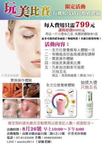 健康活耀生活~玩美比賽-有機植皮換膚技術體驗價799元!限定活動~快來報名